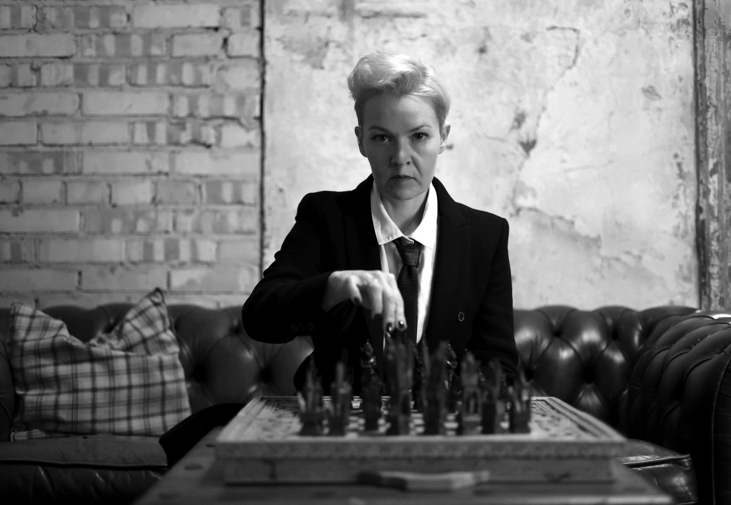 Kostiumas. Kaklaraištis. Trumpi platininiai plaukai. Akys, kurios jau mato dvylika ėjimų į priekį. Ji deda savo figūrą su ramiu įsitikinimu, kad visada žinojo – ji priklauso šiam stalui.