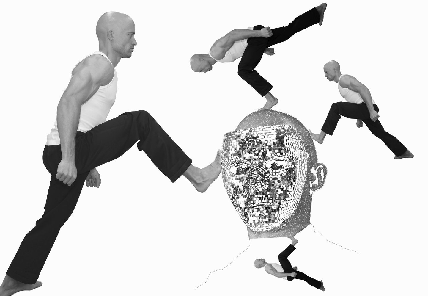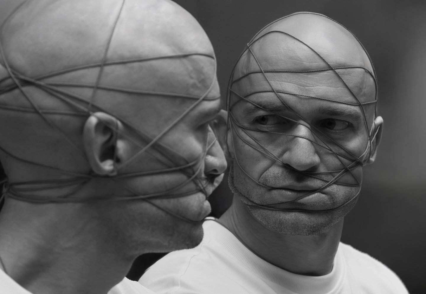 Kelios vyro versijos sukasi aplink milžinišką veidrodinę galvą, įstrigusios mintyse, šoka su savimi, kuri nuolat klausia – kas valdosi ką?