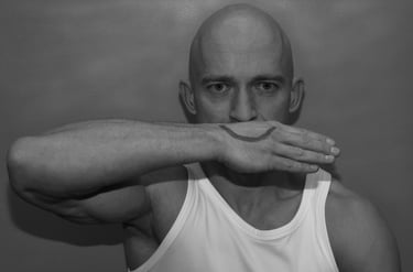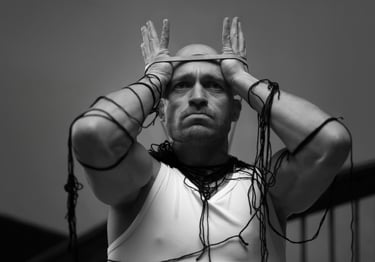 EN: These twelve images represent the core of my practice: people caught between what they show the world and what lives inside them.