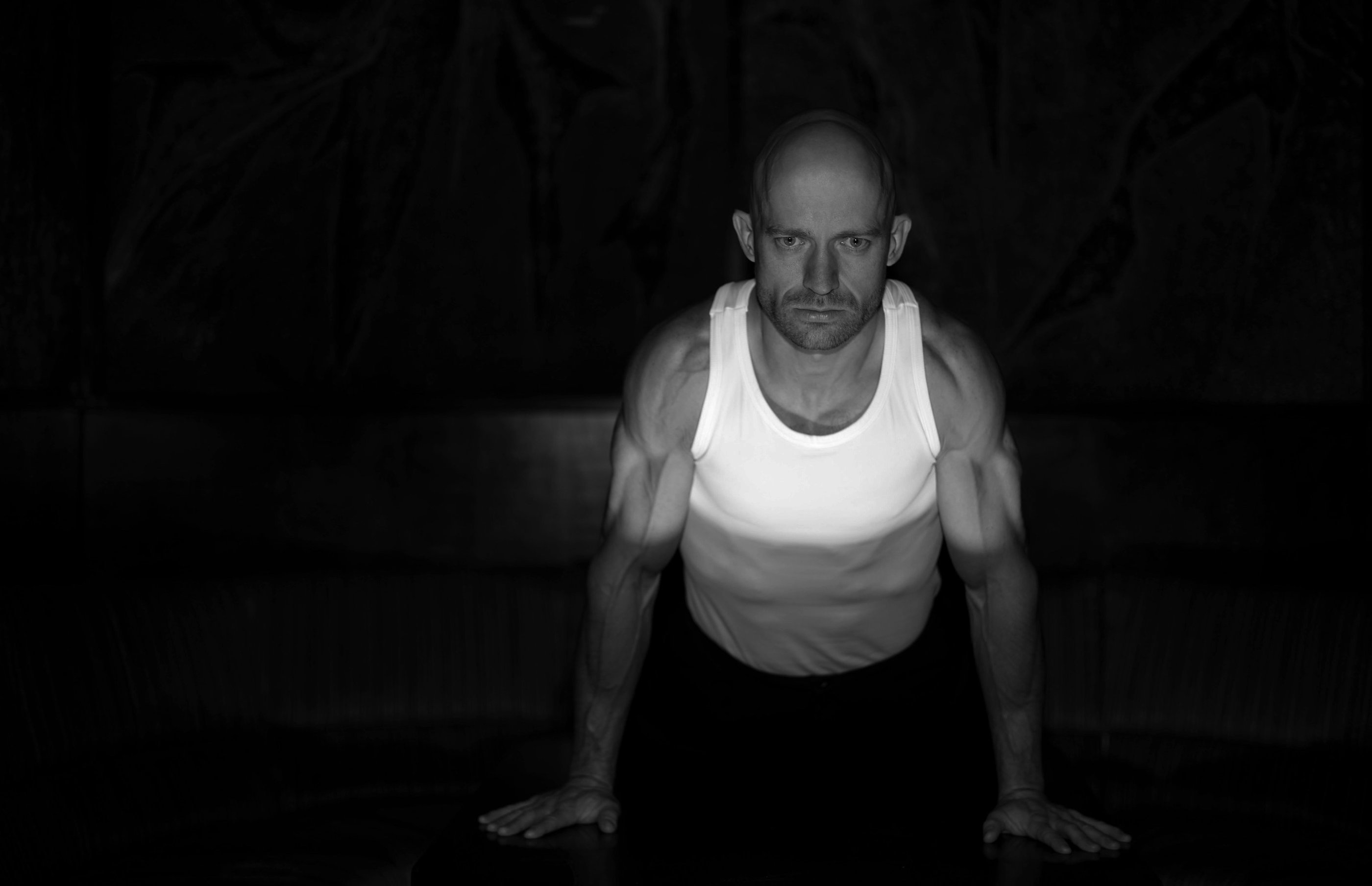 LT: Vidinis portretas. Įtempti raumenys ir dramatiškas žvilgsnis tamsiame fone atskleidžia vidinį portretą – kovą ir nepalenkiamą pasipriešinimą.