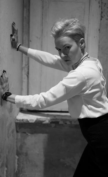 EN: "Relationship with oneself / Lost femininity" — Heels off. Finally alone with herself.